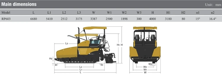 6m Width Road Asphalt Paver RP603 diesel Asphalt Concrete Paver for Concrete Paving