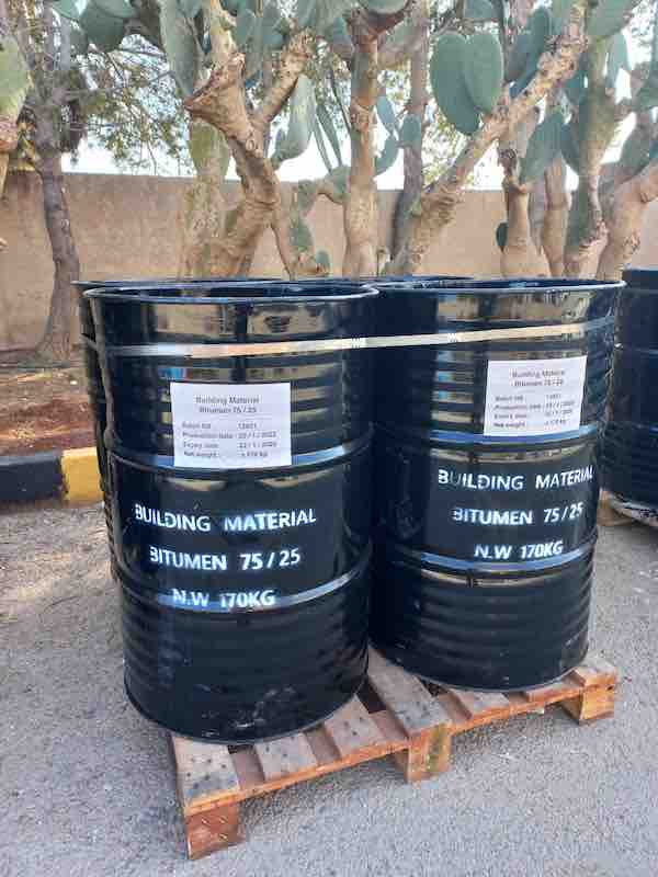 We are able to supply bitumen 75/25 in 25Kg meltable bag,50Kg meltable bag,25Kg craft bag,50Kg craft bag,25Kg carton box. In 20ft container we can supply 22.8MT bulk or pallet. In case you are looking for drum packing it is possible in 185Kg Net and 220Kg drum.